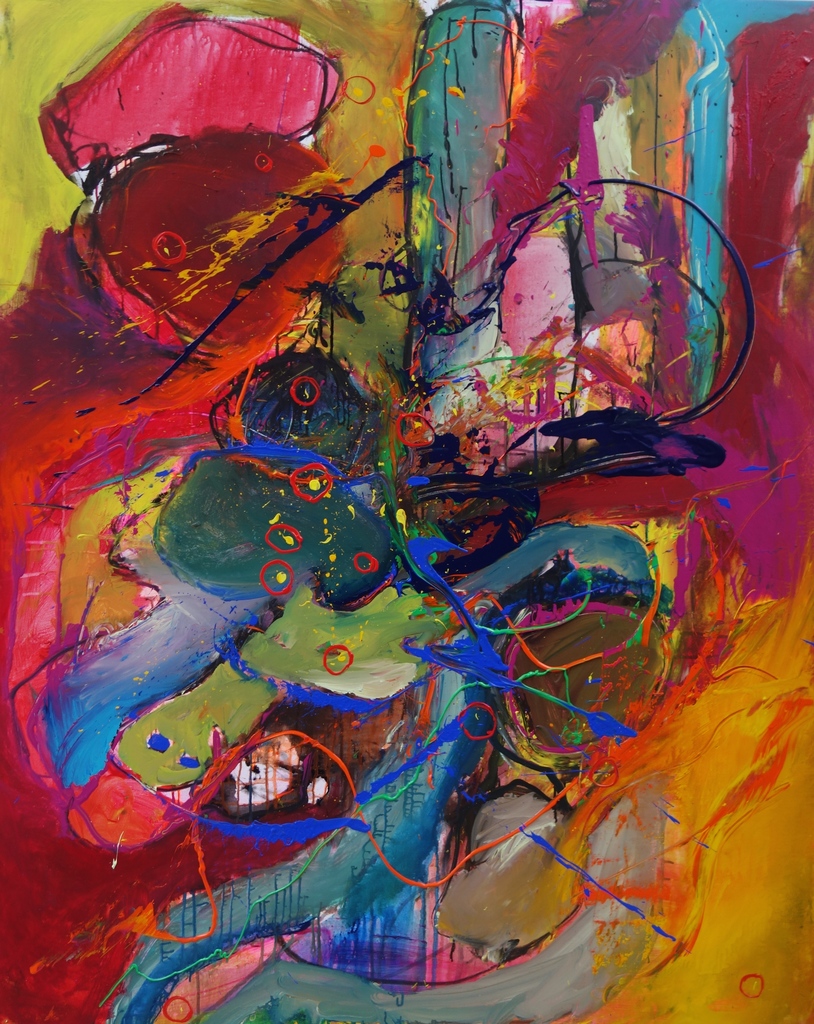 acryl, o-i inkt op linnen, abstract-expressionisme