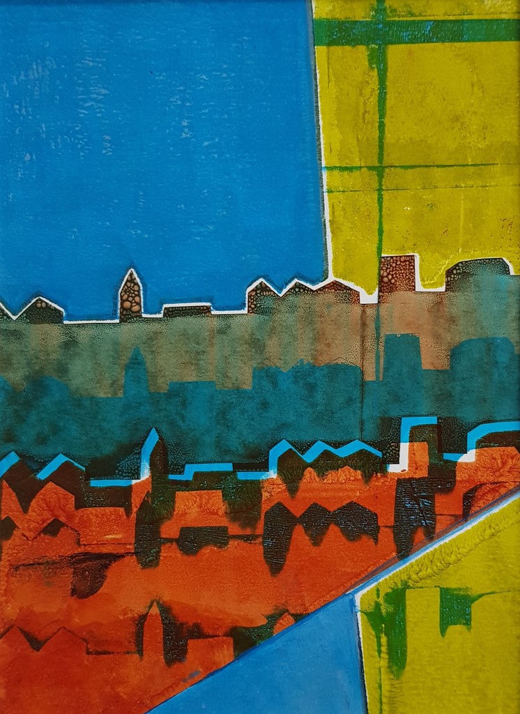Landschap Gemengde Techniek Kleurrijk Kaart Stad Zeefdruk Monoprint