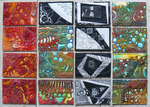 Quilt in 5 delen, ontkiemende bol. Loslatende schillen.