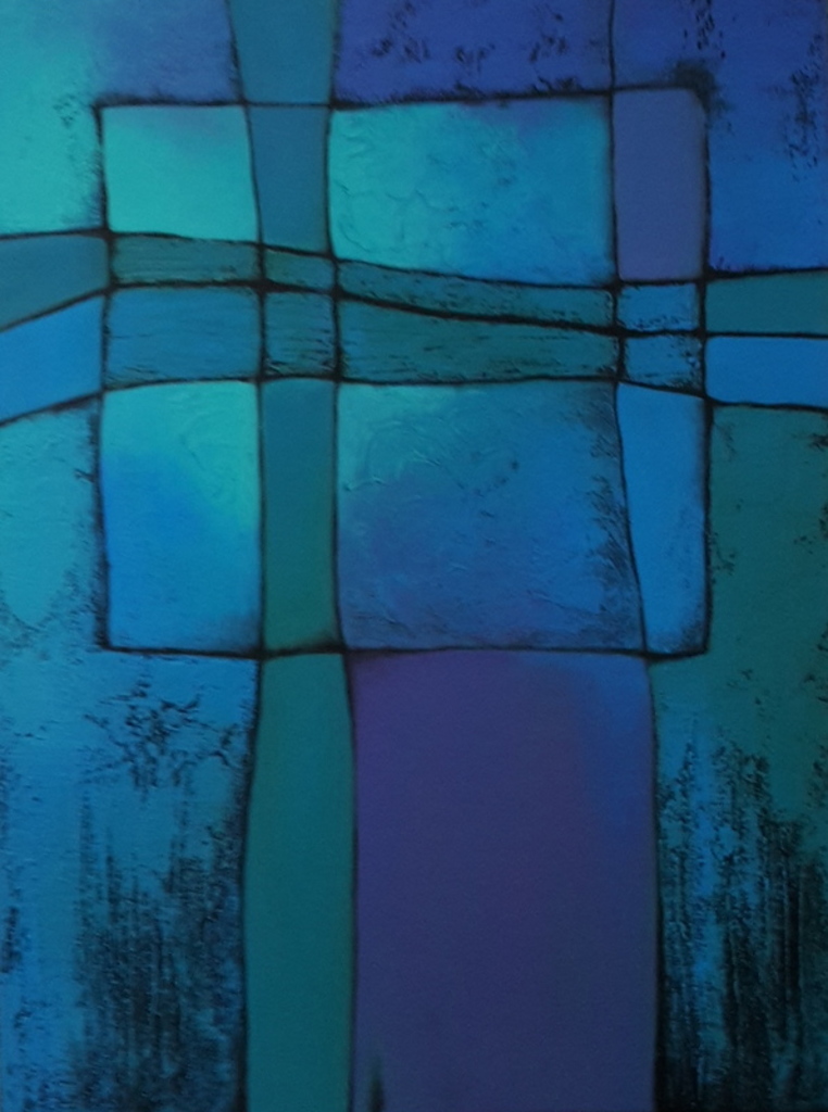 Blauw Paars Groen Mixed Media Tweeluik