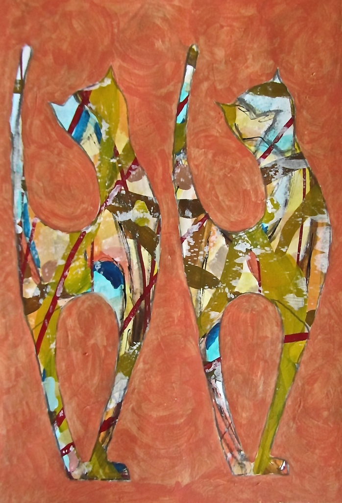 Abstract Acrylic Katten Poezen Speels Ijdel Colourful Playful Stout Catpainting