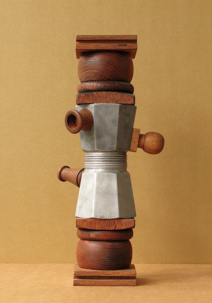 Hout Mixed Media Beeld Aluminium Boom Assemblage Ruimtelijk