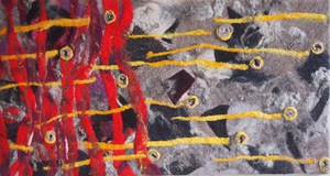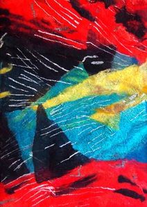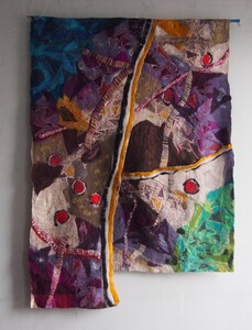 Nora van Klingeren, geboren Amsterdam wol en zijde, schrijven over klimaatverandering en het maken van textielwerken om onderwerp bespreekbaar te maken (www.noravanklingeren.nl)