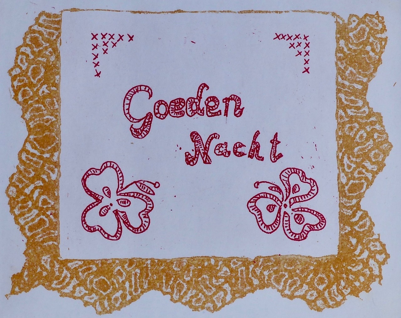 Tussen de verkleedkleren vond ik dit pyamatasje, heel vroeger deed ik hier mijn pyama in en legde het dan 's morgens op bed als een soort kussentje. Het is in passepartout+lijst