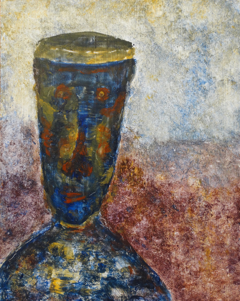 Mijn eerste werk met eitempera (op paneel), een oude techniek. Hoe een beker een portret werd.