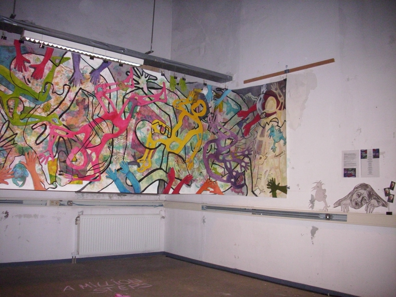A Million Steps is een werk van 10m x 1.50m. Een verhaal over mensen, hun beleving en de keuzes die gemaakt worden in het leven.