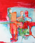 Mijn kleurrijke Acryl schilderijen omschrijf ik als "lyrisch Expressionistisch ". Deze schilderijen ontstaan als een soort dagboeken met een eigen poëtische beeldtaal. Het hoofdthema in mijn schilderijen is het weergeven van menselijke gedaanten in vaag aangeduide landschappen met architectonisch ogende elementen. Ik zie de emotie als een van de belangrijkste elementen van het creatieve vermogen. Wat ik zoek is het geheim van het menselijke bestaan.