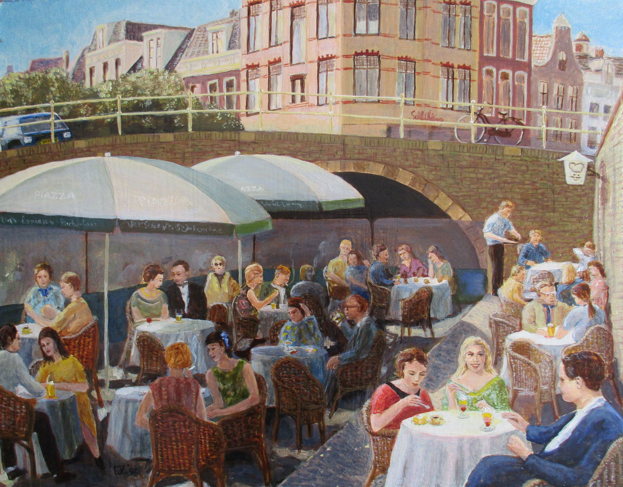 Vol terras in de zomer aan de Kelders Leeuwarden