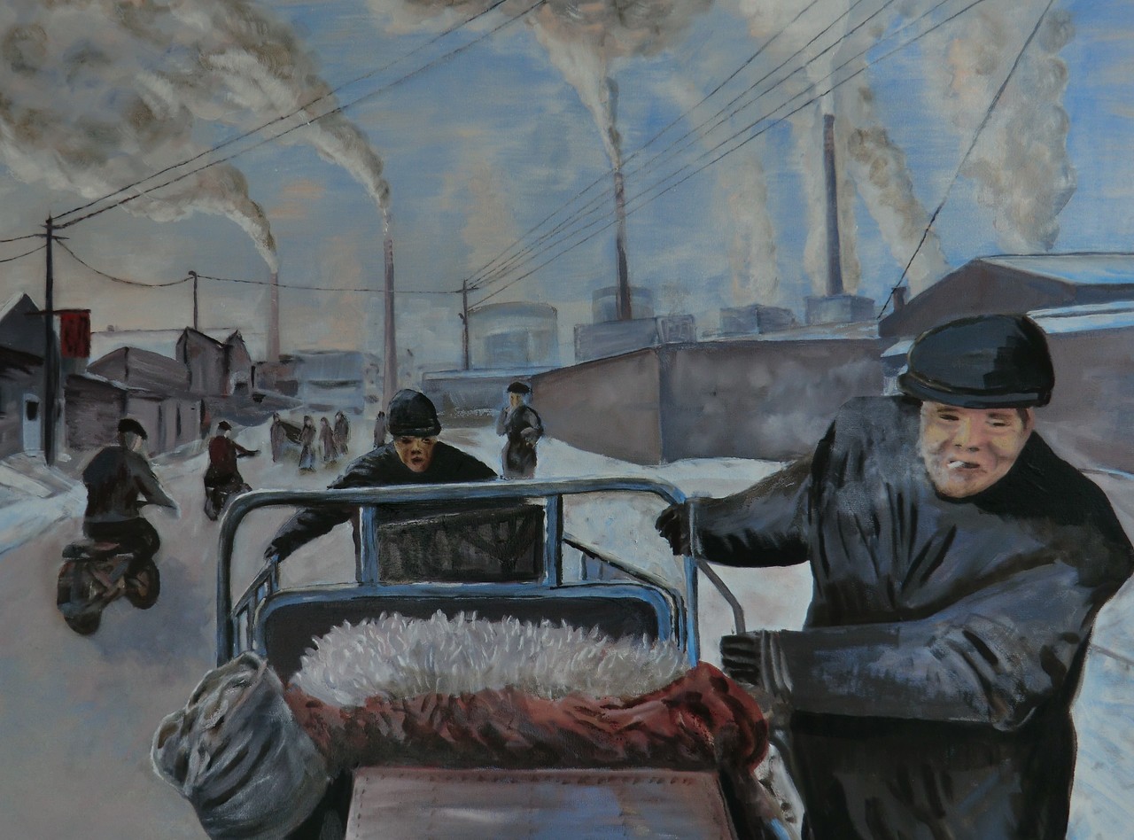 Industrieel landschap in China, geïnspireerd door een World Press Photo 60x80cm.