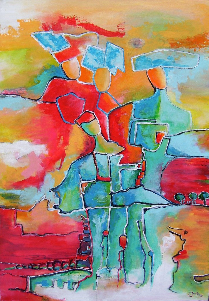 Mijn kleurrijke Acryl schilderijen omschrijf ik als "lyrisch Expressionistisch ". Deze schilderijen ontstaan als een soort dagboeken met een eigen poëtische beeldtaal. Het hoofdthema in mijn schilderijen is het weergeven van menselijke gedaanten in vaag aangeduide landschappen met architectonisch ogende elementen. Ik zie de emotie als een van de belangrijkste elementen van het creatieve vermogen. Wat ik zoek is het geheim van het menselijke bestaan.