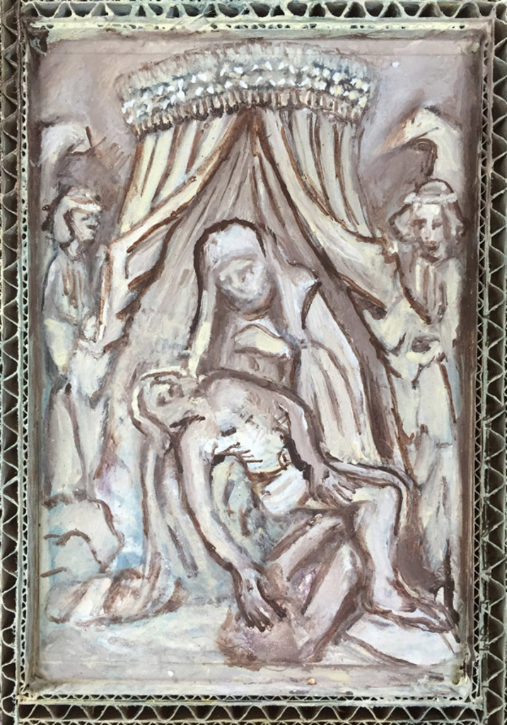vrij naar Pieta/Pax in ivoorsnijwerk uit Frankrijk 1450- 1500