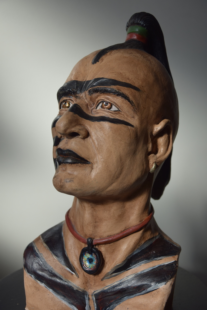 Indiaan met gevechtskleuren.Keramiek borstbeeld