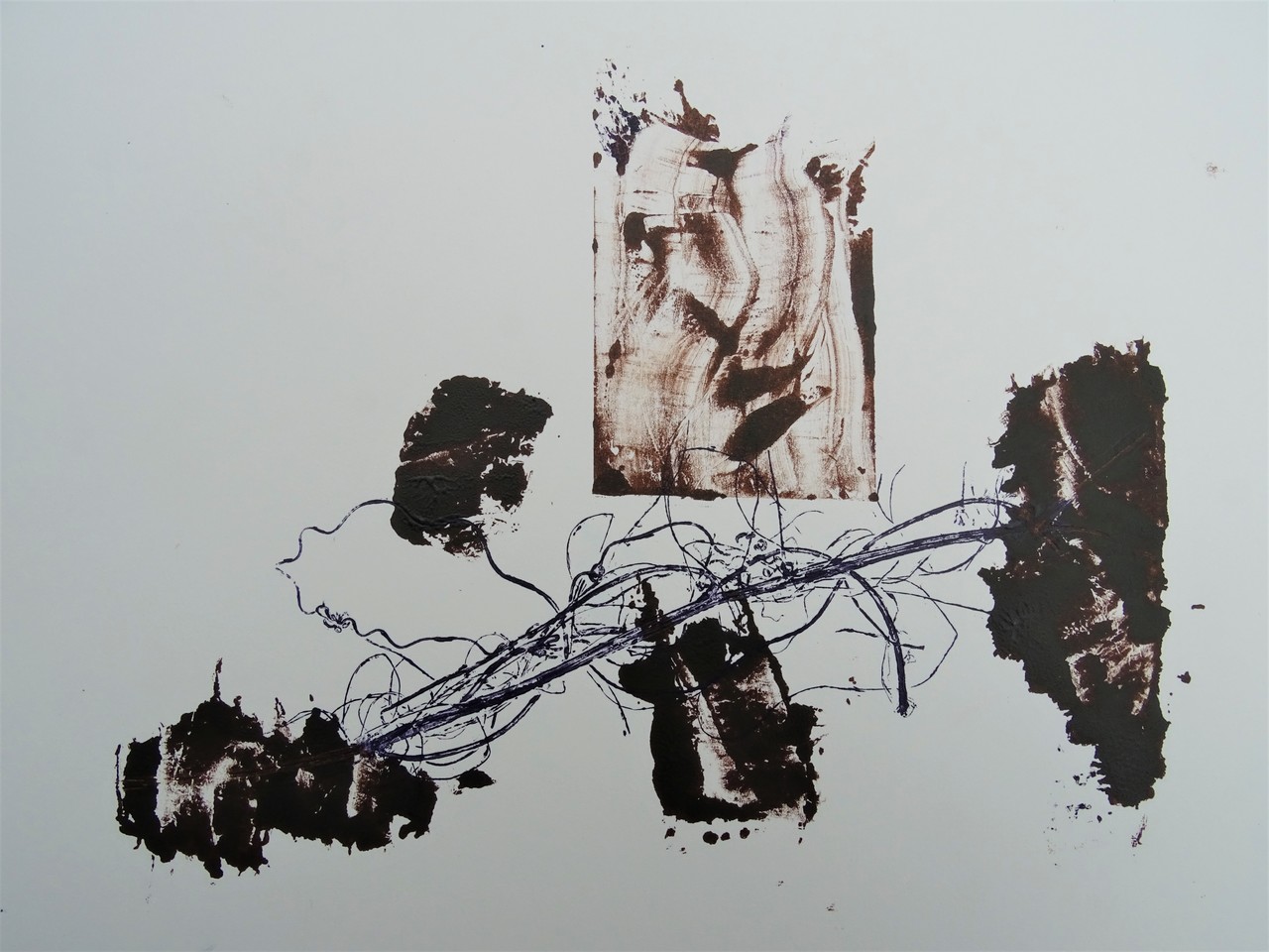 Het verkeer tussen verschillende / secties dient de uitwisseling / mogelijk te maken van een / verscheidenheid in inzicht / en ervaring / waarvan? monoprint, twee fasen