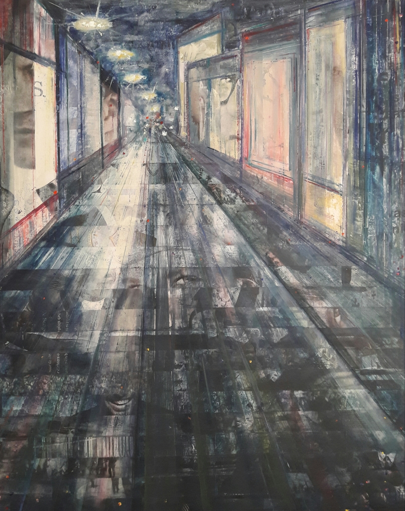 Ik maak in mijn werken gebruik van papier en olieverf. Sommigen noemen het collages, ik noem het liever collageschilderijen.