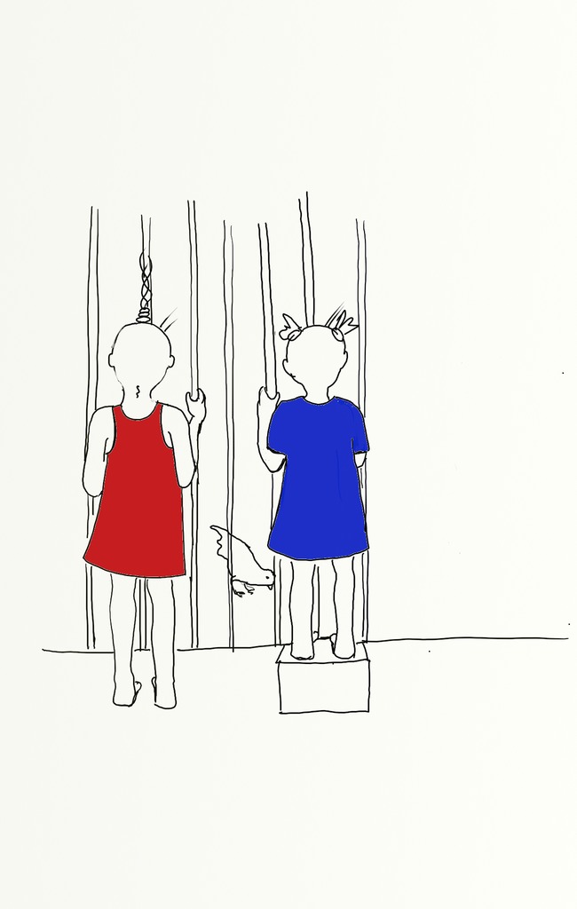 Rood Blauw Meisjes Kipjes Lijntekening Red Blues Girls Chickens Linedrawing