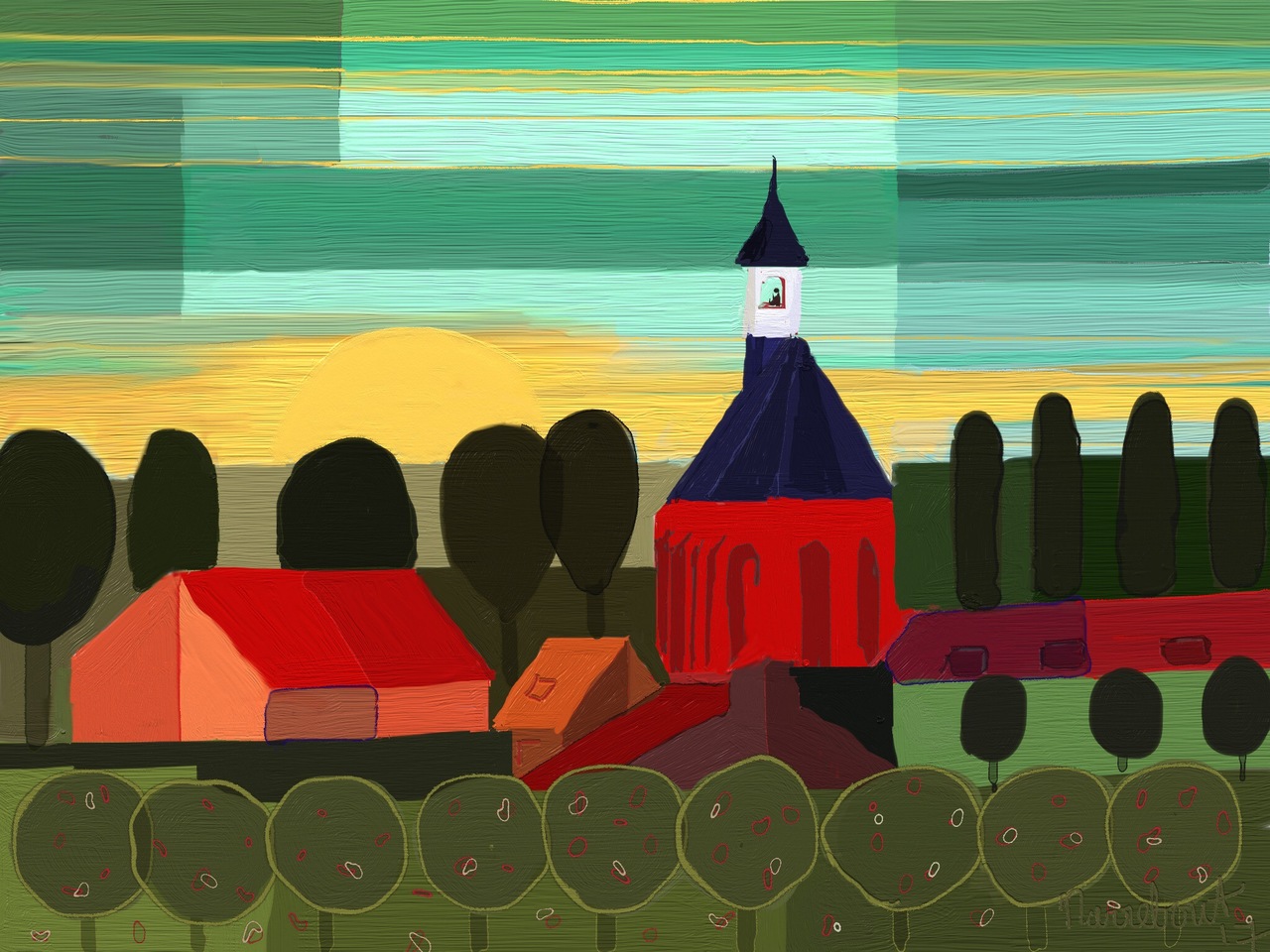 Landschap Digitaal Kleurrijk Kunst Grafiek Zeeland Dorpsgezicht Ipad