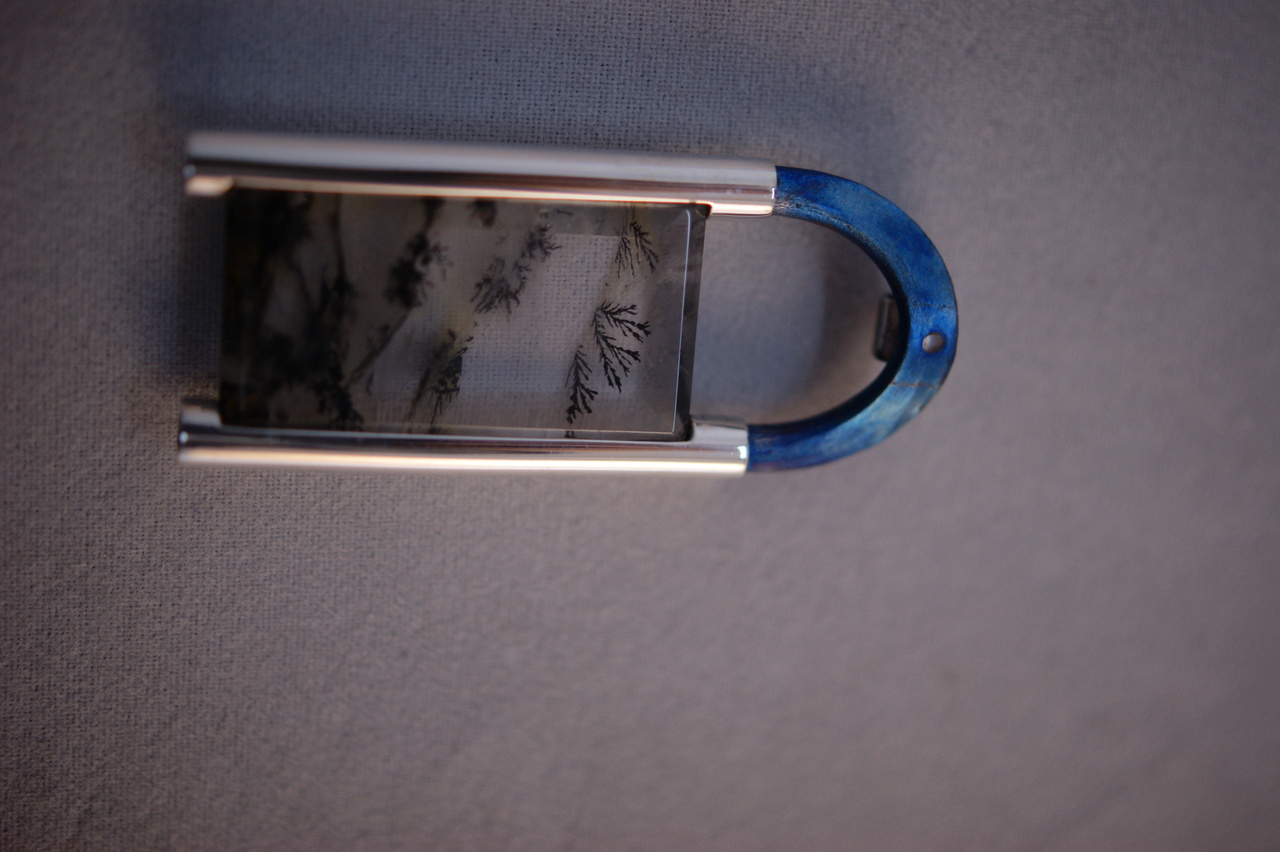 landschaps agaat met zilver bamboe en regenboog wolken van titanium.