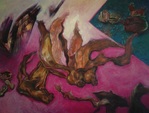 Schilderijen en tekeningen in beweeglijke expressieve stijl met diverse onderwerpen.