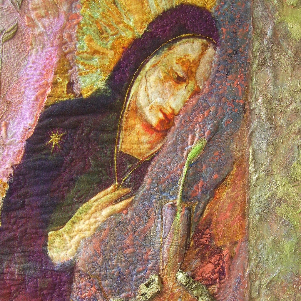 Ik ben een materialen mens, en maak samenvoegingen van verschillende materialen; foto’s, stoffen en borduursels, soms ook gecombineerd met hout, lood en steen, op wisselende formaten