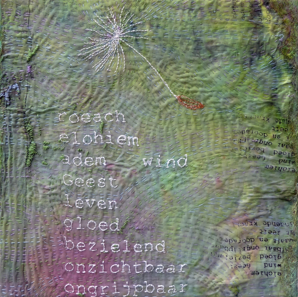 Ik ben een materialen mens, en maak samenvoegingen van verschillende materialen; foto’s, stoffen en borduursels, soms ook gecombineerd met hout, lood en steen, op wisselende formaten