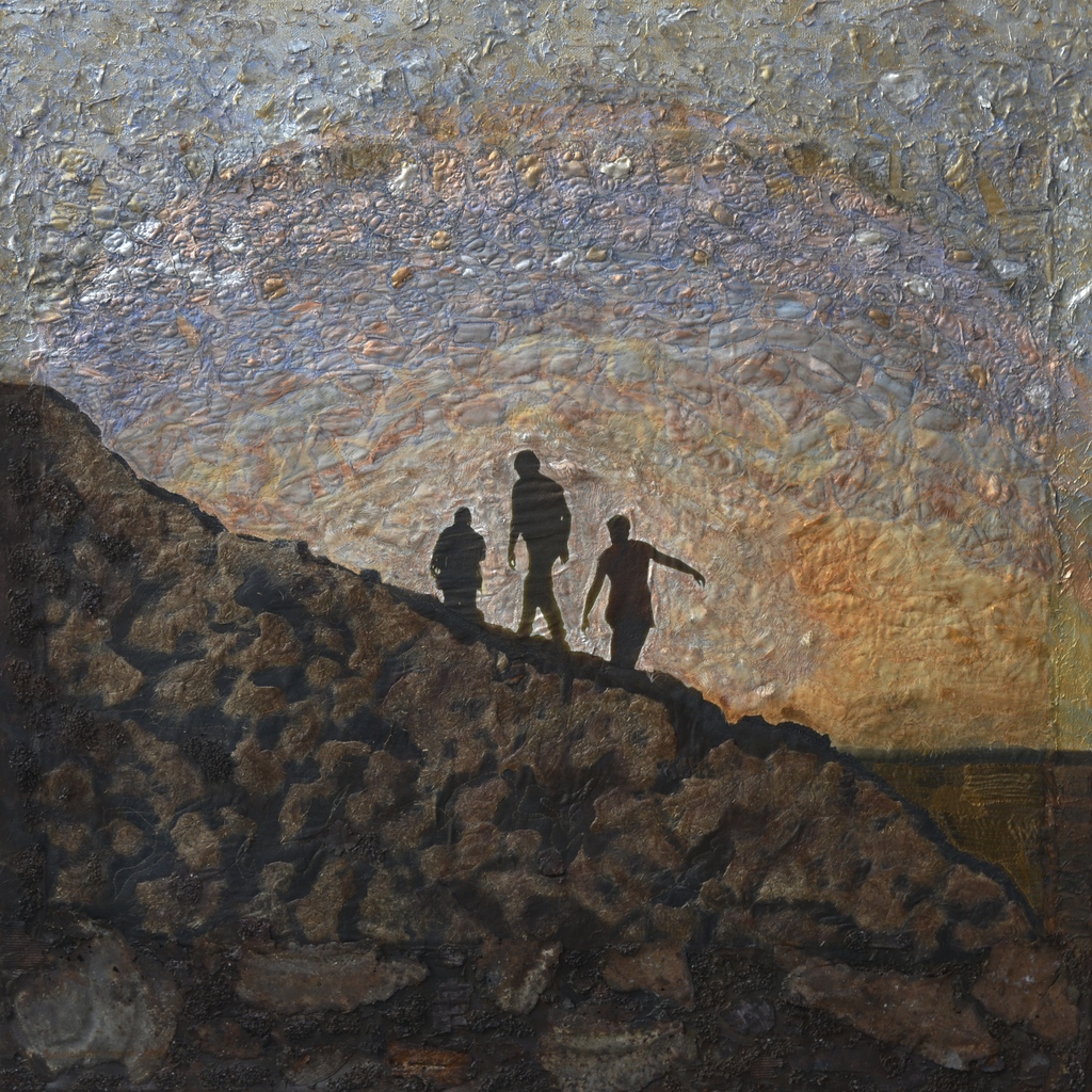 Ik ben een materialen mens, en maak samenvoegingen van verschillende materialen; foto’s, stoffen en borduursels, soms ook gecombineerd met hout, lood en steen, op wisselende formaten