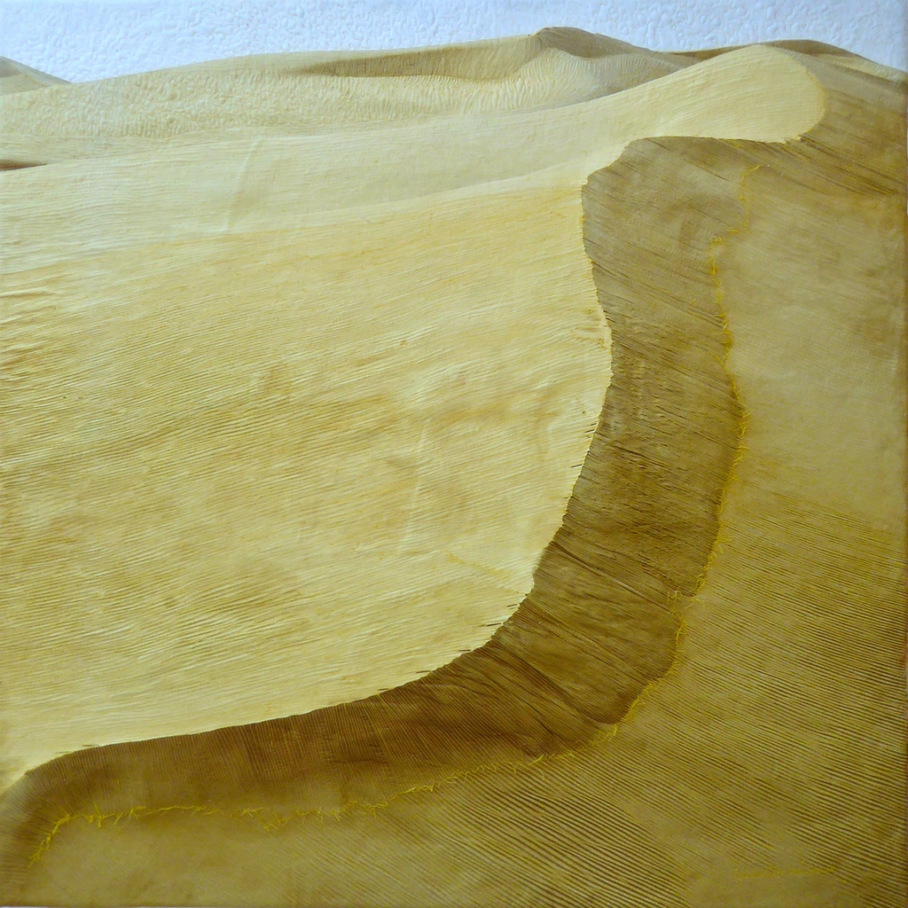Ik ben een materialen mens, en maak samenvoegingen van verschillende materialen; foto’s, stoffen en borduursels, soms ook gecombineerd met hout, lood en steen, op wisselende formaten