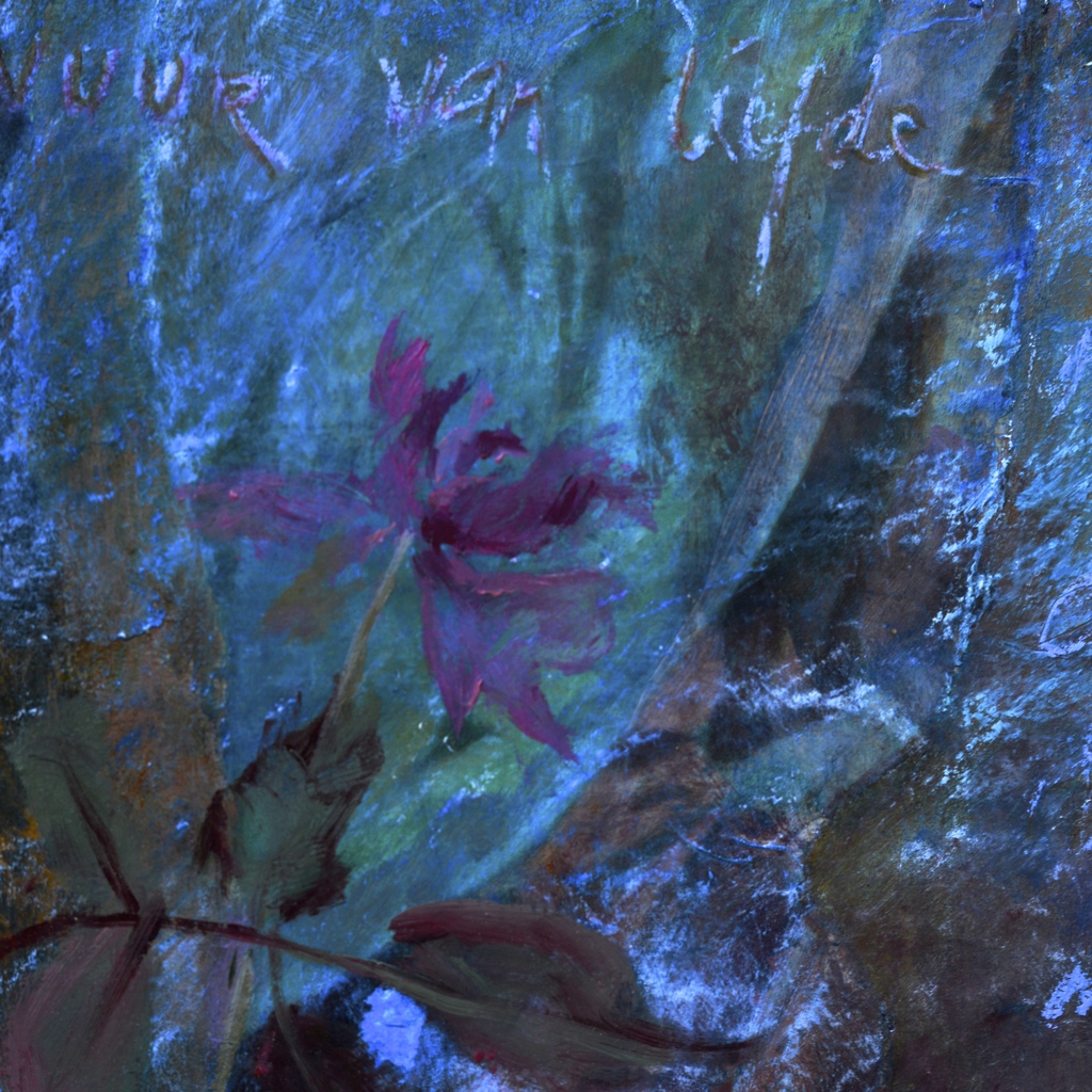 Dubbele kaart (formaat 15 x 15 cm) van detail van het kunstwerk 'Vuur van liefde', inclusief envelop.