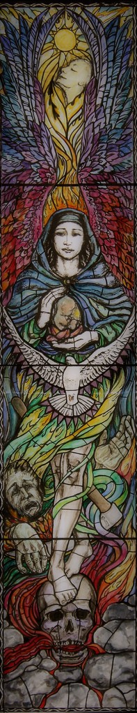Dit is één van drie ontwerpen voor glas in lood ramen gemaakt voor een museum voor fatastische kunst. Museum is niet gerealiseed. Ontwerp ongebruikt.