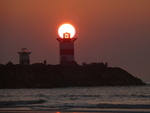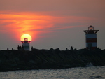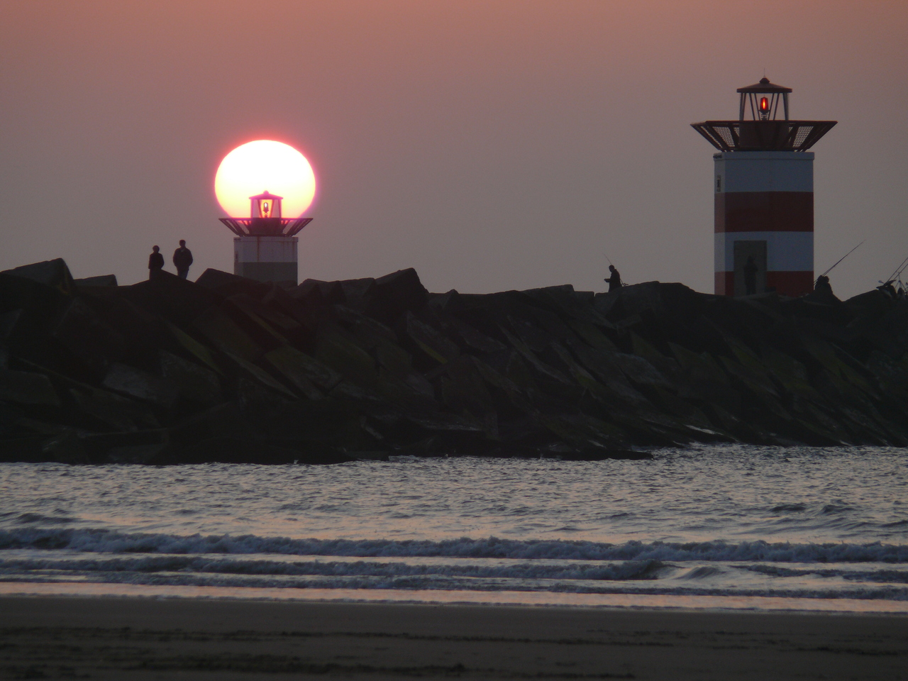 De AVONDZON op het havenlicht van het zuidelijke havenhoofd van Scheveningen