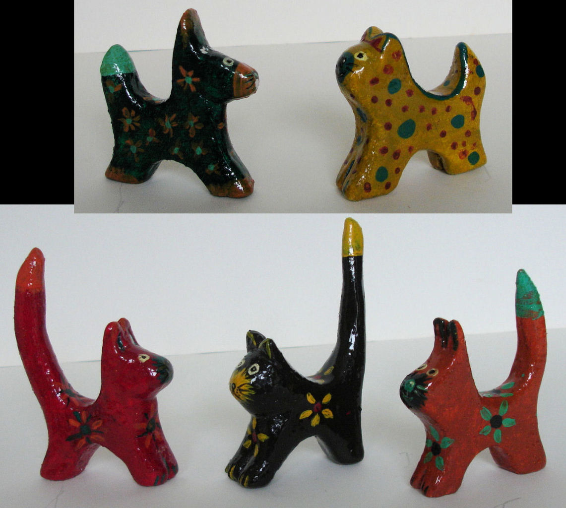hondjes en katjes van keramiek met acrylverf bewerkt