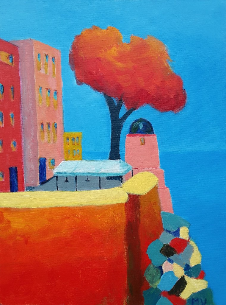 een vrije impressie van een van de vele kustplaatsjes aan de Spaanse Costa´s