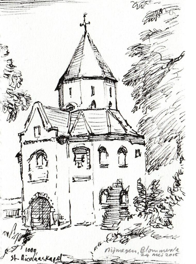 Kleine pentekening van St. Nicolaaskapel in Nijmegen
