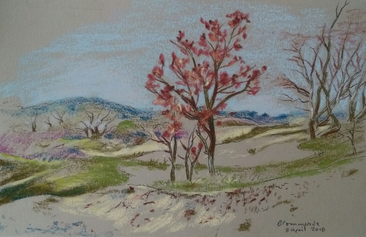 Pasteltekening van duinlandschap in Meijendel, Den haag