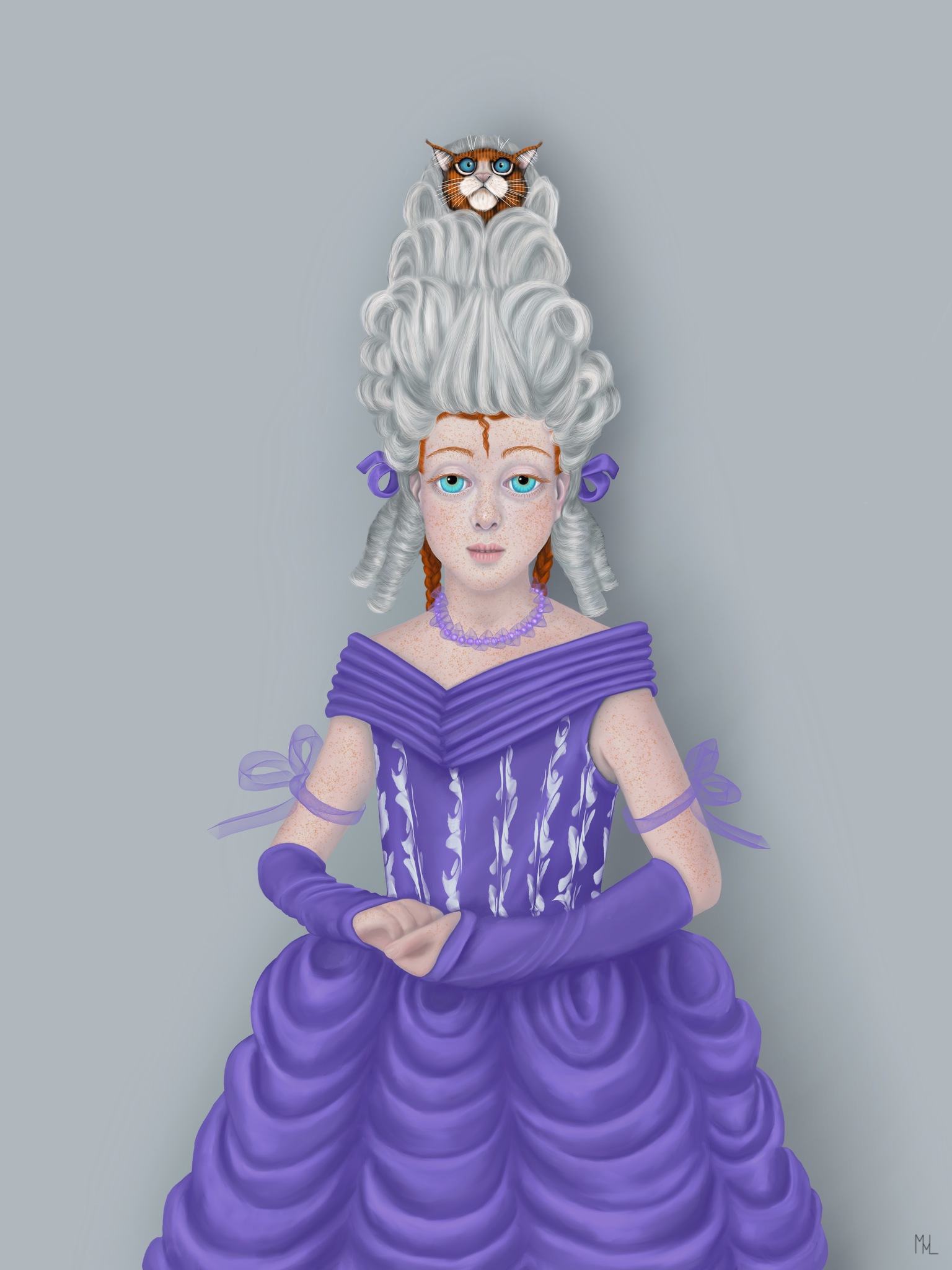Meisje Girl Surreëel Cat Digitaal Geschilderd Digital Painted Surreal Pruik Wig