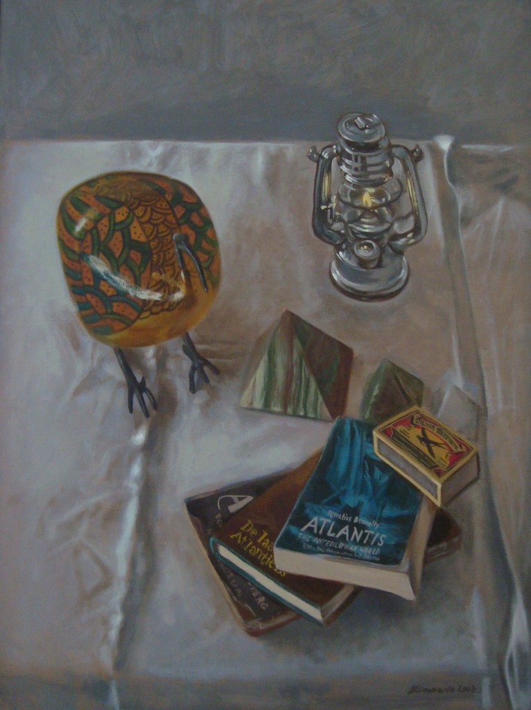 Schilderij Figuratief Realistisch Olieverf Stilleven Boeken Atlantis