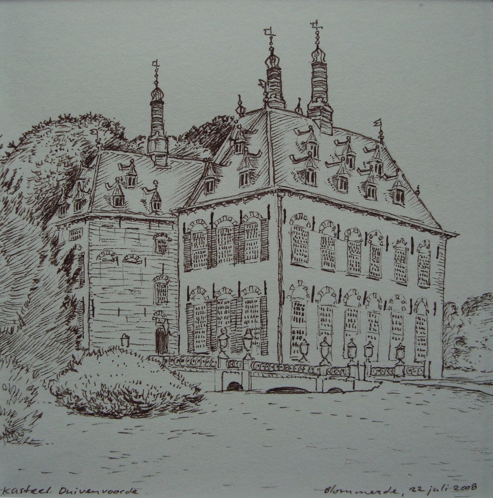 Pentekening van kasteel Duivenvoorde in Voorschoten
