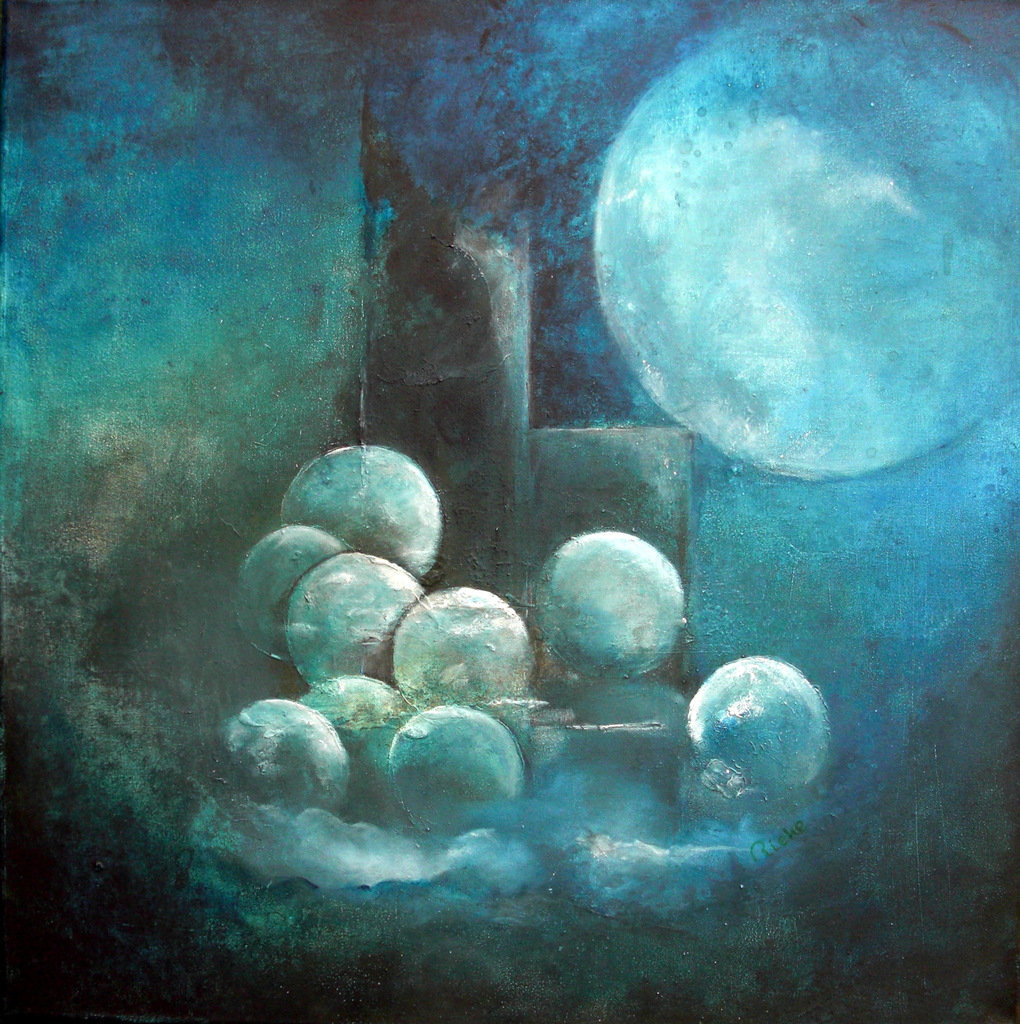 Orbs Lichtbollen Energieoverdracht Blauw Acryl/olieverf