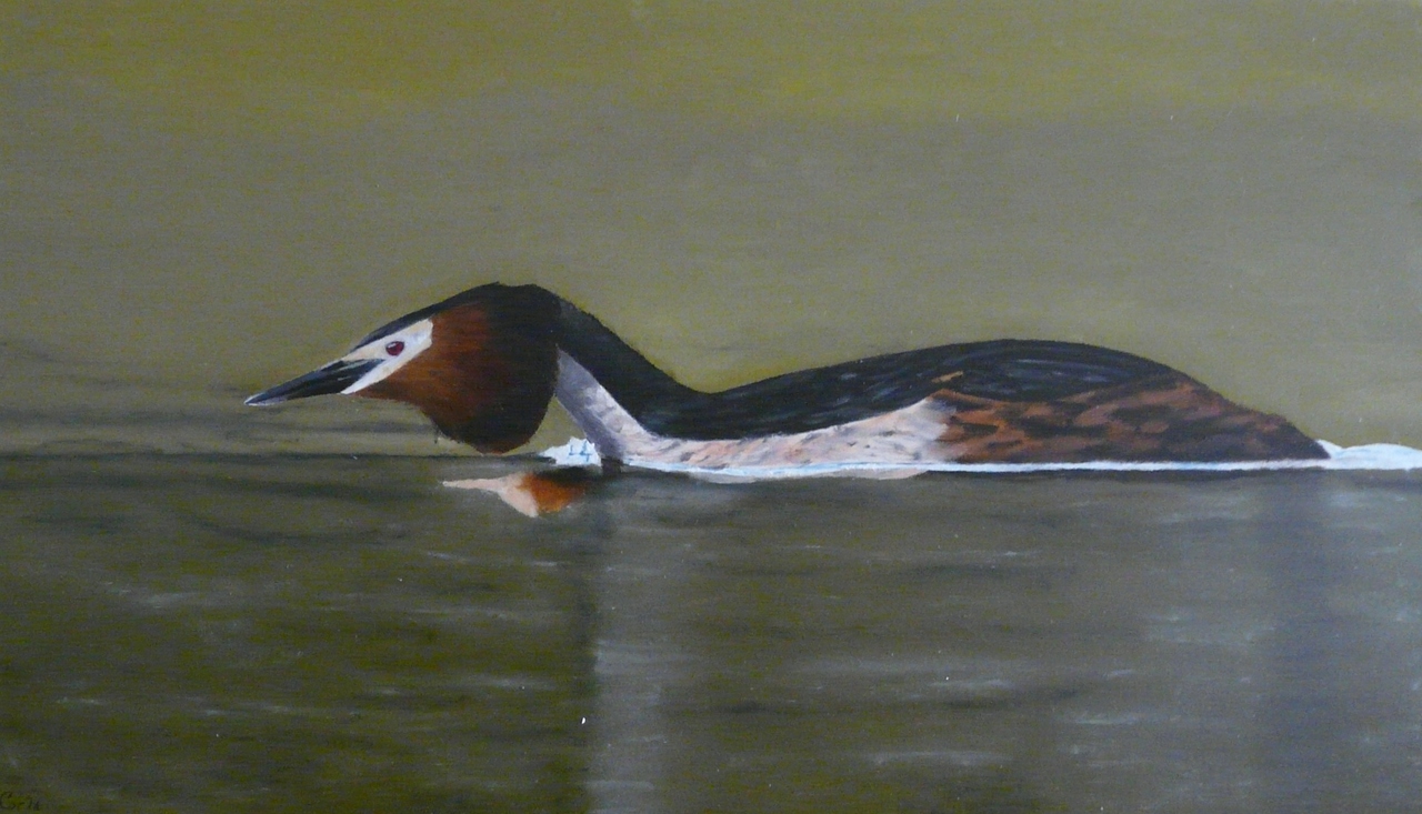 Wit Groen Bruin Olieverf Realistsich Fuut Lijst