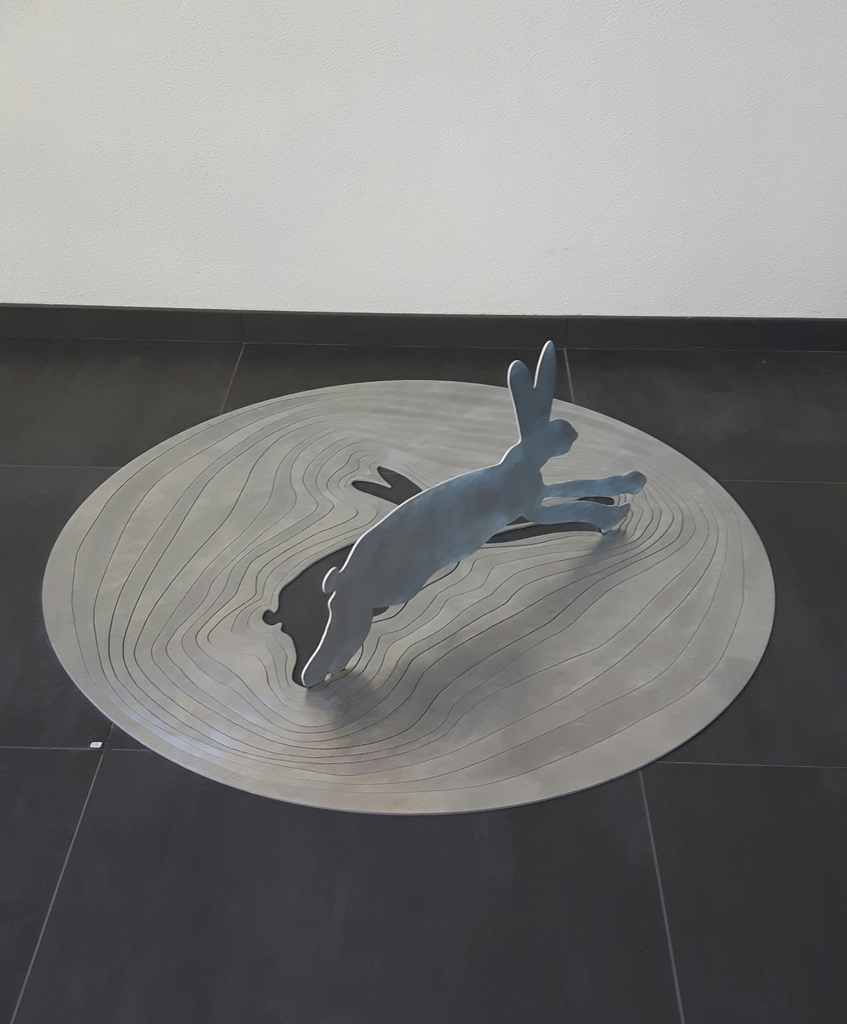 Door mijn ogen gezien, is de tastbare wereld opgebouwd uit puntjes. Vele bewegende puntjes, in verschillende dichtheid, veroorzaken vorm, maar veel minder vast dan je tastend zou voelen. In mijn werk communiceer ik deze waarneming.
