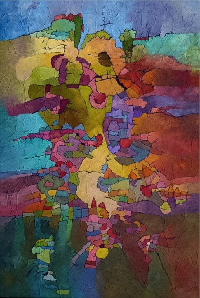Abstracte schilderijen en dito beschilderde objecten in een stijl die ligt tussen geraffineerde eenvoud en georganiseerde chaos