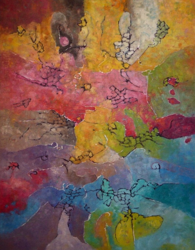 Abstracte schilderijen en dito beschilderde objecten in een stijl die ligt tussen geraffineerde eenvoud en georganiseerde chaos