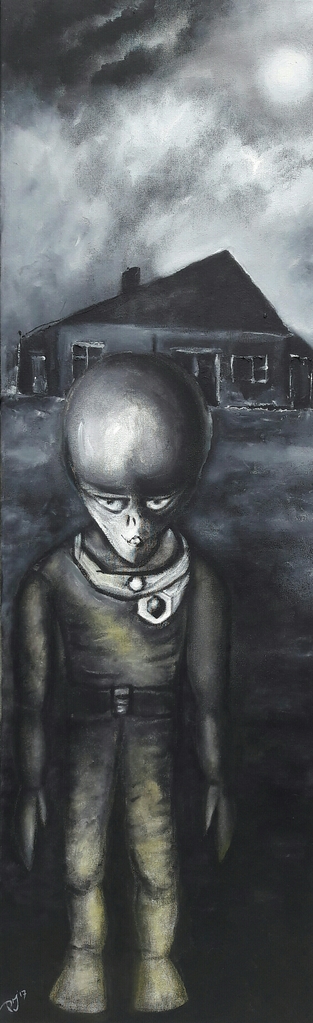 PJ, Alkmaar, 1955(autodidact) Ik noem mij kunstschilder, schrijver en drummer. Aanvankelijk schilderde ik surrealistische stijl. Nam in de jaren 80 deel aan de door actrice Ine Veen en fijnschilder Jean Thomassen georganiseerde kunstmanifestaties door het hele land. Thans sturen mijn penselen mij in de richting van grillige wezens (zgn. 'Grotesken') en schots en scheef bouwwerkjes (zgn. crooked houses).Bij elkaar wat men zou kunnen noemen zelfgeschapen werkelijkheid. Wie weet welke sluimerende penseelstreken eenmaal op dreef, nog voor het ongewisse voetlicht zullen treden. Interpreteren maar. Gaat u gang, kijker.
