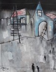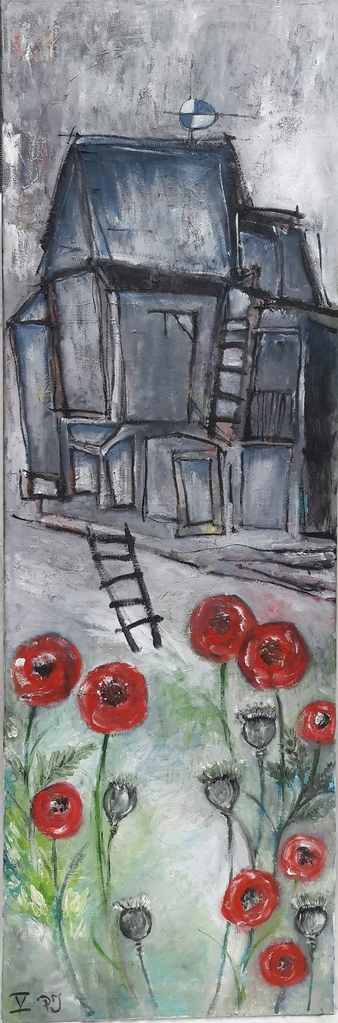 PJ, Alkmaar, 1955(autodidact) Ik noem mij kunstschilder, schrijver en drummer. Aanvankelijk schilderde ik surrealistische stijl. Nam in de jaren 80 deel aan de door actrice Ine Veen en fijnschilder Jean Thomassen georganiseerde kunstmanifestaties door het hele land. Thans sturen mijn penselen mij in de richting van grillige wezens (zgn. 'Grotesken') en schots en scheef bouwwerkjes (zgn. crooked houses).Bij elkaar wat men zou kunnen noemen zelfgeschapen werkelijkheid. Wie weet welke sluimerende penseelstreken eenmaal op dreef, nog voor het ongewisse voetlicht zullen treden. Interpreteren maar. Gaat u gang, kijker.