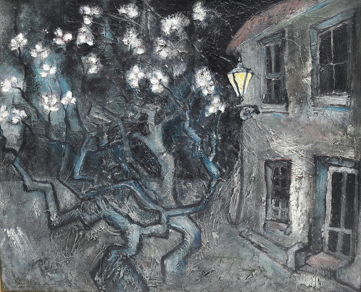 PJ, Alkmaar, 1955(autodidact) Ik noem mij kunstschilder, schrijver en drummer. Aanvankelijk schilderde ik surrealistische stijl. Nam in de jaren 80 deel aan de door actrice Ine Veen en fijnschilder Jean Thomassen georganiseerde kunstmanifestaties door het hele land. Thans sturen mijn penselen mij in de richting van grillige wezens (zgn. 'Grotesken') en schots en scheef bouwwerkjes (zgn. crooked houses).Bij elkaar wat men zou kunnen noemen zelfgeschapen werkelijkheid. Wie weet welke sluimerende penseelstreken eenmaal op dreef, nog voor het ongewisse voetlicht zullen treden. Interpreteren maar. Gaat u gang, kijker.