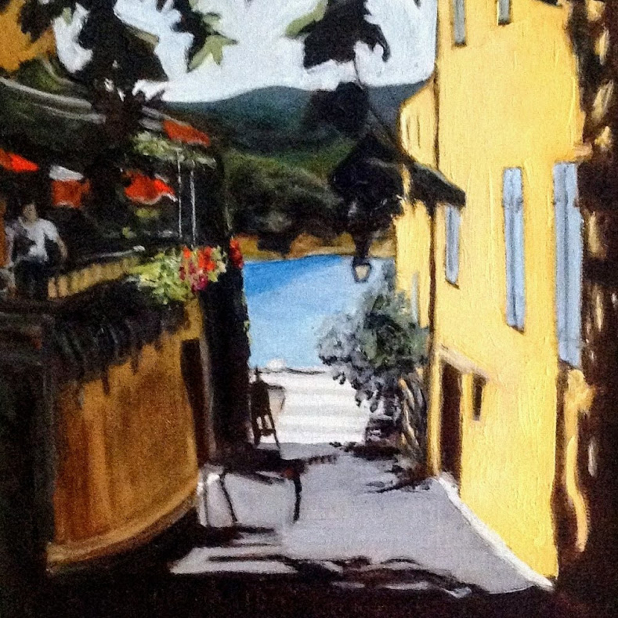 Het meer bij Bauduen in Frankrijk Dit schilderij werd genomineerd voor de schilderwedstrijd Vive La France Hummelo 2016.