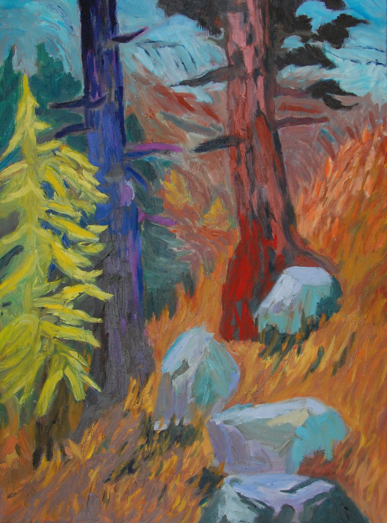 Sophie Bekkering toont in haar schilderijen en keramiek de grootse natuur. Begonnen vanuit wandelingen door de Gelderse bossen is ze inmiddels de bomen nagereisd tot aan en over de boomgrens. De ongerepte alpine ruimte waarin bomen, rotsen en water figureren.is haar speelveld.In haar schilderijen verbeeldt ze de onderliggende krachten van deze stille omgeving door middel van haar expressieve toetsen en levendige kleurcontrasten.