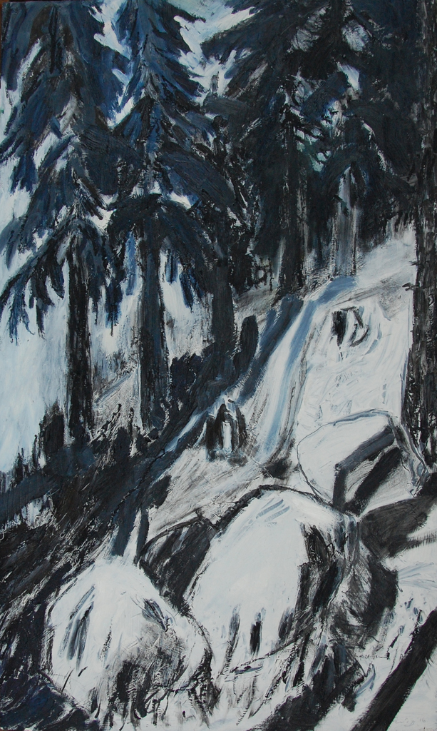 Sophie Bekkering toont in haar schilderijen en keramiek de grootse natuur. Begonnen vanuit wandelingen door de Gelderse bossen is ze inmiddels de bomen nagereisd tot aan en over de boomgrens. De ongerepte alpine ruimte waarin bomen, rotsen en water figureren.is haar speelveld.In haar schilderijen verbeeldt ze de onderliggende krachten van deze stille omgeving door middel van haar expressieve toetsen en levendige kleurcontrasten.