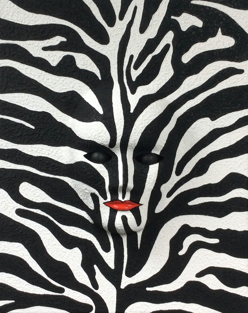 3D-kunst, gemaakt van doek en masker, bewerkt met een mix van acryl en zand. Inclusief smalle zwarte baklijst.