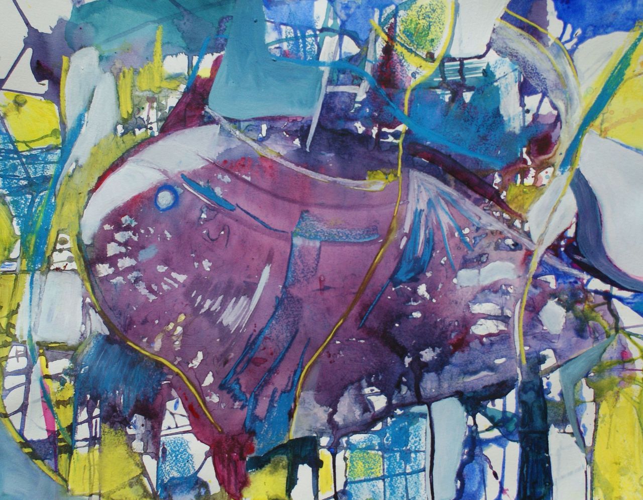 Vis, gemengde techniek Acryl en pastelkrijt op papier 50 x60