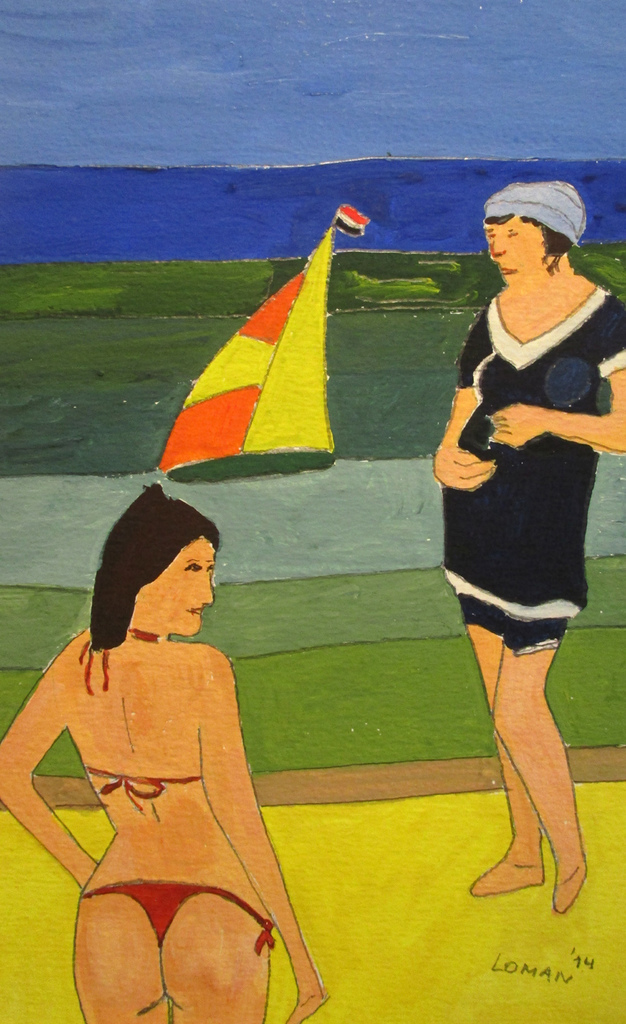 Karel Loman schildert expressief. Zijn landschappen en stads- en dorpsgezichten zet hij in heldere kleuren op papier. De sfeer van het landschap staat bij hem voorop. Loman werkt voornamelijk met temperaverf, aangevuld met inkt of potlood.